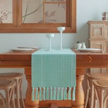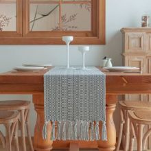 Crafted from 100% polyester, this runner is durable, easy to clean, and long-lasting. The knitted jacquard fabric offers a subtle texture that feels luxurious yet practical. Its dustproof design protects your furniture, while the elegant tassels add a delicate finishing touch that elevates any interior. Designed in an American style, the plaid pattern and neutral tones make it versatile enough to complement both modern and traditional décor. Its lightweight construction allows for easy placement and removal, making it a functional accessory for daily use or special gatherings.Why You’ll Love This Table Runner
