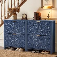 Use our battle tested marketing materials for 2-Tier Slim Shoe Cabinet Set - Narrow Storage Organizer for Entryway or Hallway in Night Blue