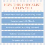 - Enjoy travel more: The checklist offers practical steps to disconnect and appreciate the moments that truly matter.