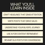 - Chapter 1: The Sales Foundation — Before You Write a Single Word – Learn how to define the outcome you want, understand your buyer deeply, and align your post with the buyer’s journey.