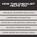 Don’t waste any more time scrolling through endless listings. Download the AI Car Price Comparison checklist today and get started on your smarter car-buying journey. With AI on your side, finding the best deal has never been easier. Purchase now and take the first step toward a better car shopping experience!