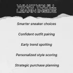 5 Key Benefits • Smarter sneaker choices • Confident outfit pairing • Early trend spotting • Personalized style scoring • Strategic purchase planning