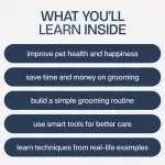 - Comprehensive Grooming Guide: Learn the fundamentals of grooming dogs and cats, including brushing, bathing, nail trimming, and paw care.