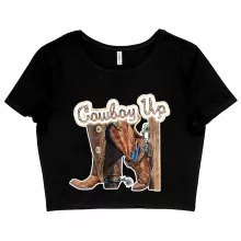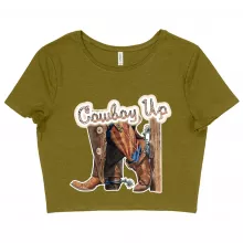 Use our battle tested marketing materials for Women's Cropped Cowboy Up T-Shirt - Vintage Tee Shirts