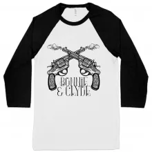 Use our battle tested marketing materials for Bonnie and Clyde Baseball T-Shirt - Gun T-Shirt - Bonnie and Clyde Clothing