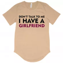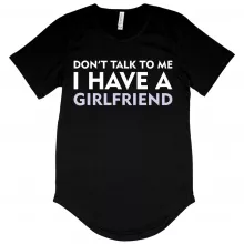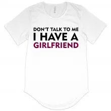 Use our battle tested marketing materials for Men's Don’t Talk to Me I Have a Girlfriend T-Shirt with Curved Hem - T-Shirt for Boyfriend