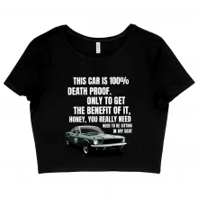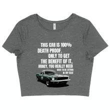 Use our battle tested marketing materials for Women's Cropped This Car Is 100% Death Proof T-Shirt - Death Proof Movie T-Shirt