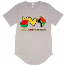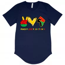 Use our battle tested marketing materials for Men's Love Peace Juneteenth T-Shirt with Curved Hem