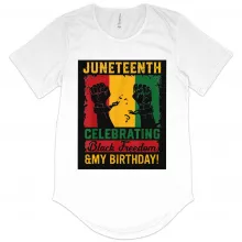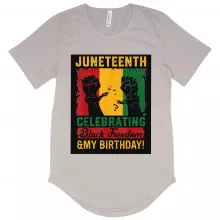 Use our battle tested marketing materials for Men's Juneteenth Celebrating T-Shirt with Curved Hem - Juneteenth Birthday T-Shirt