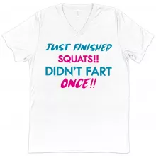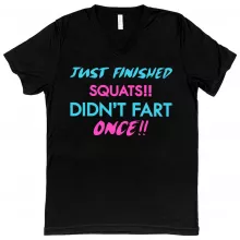 Use our battle tested marketing materials for V-Neck Just Finished Squats T-Shirt - Funny Gym Bodybuilders T-Shirt