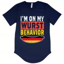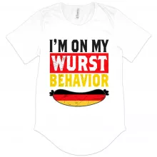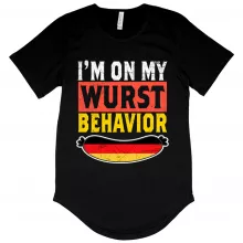 Use our battle tested marketing materials for Men's I’m on My Wurst Behavior T-Shirt with Curved Hem - Funny German T-Shirts - German Heritage T-Shirts