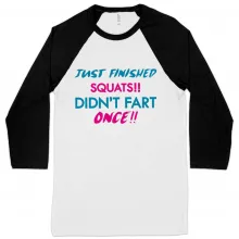 Use our battle tested marketing materials for Just Finished Squats Baseball T-Shirt - Funny Gym Bodybuilders T-Shirt