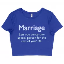 Use our battle tested marketing materials for Women's Cropped Marriage T-Shirt - Funny Marriage T-Shirts - Wedding T-Shirts