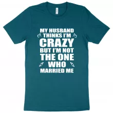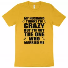 Use our battle tested marketing materials for Heather My Husband Thinks I’m Crazy T-Shirt - Funny Husband Wife T-Shirts