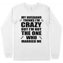Use our battle tested marketing materials for My Husband Thinks I’m Crazy Long Sleeve T-Shirt - Funny Husband Wife T-Shirts