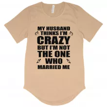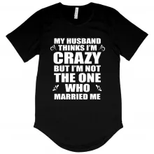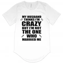 Use our battle tested marketing materials for Men's My Husband Thinks I’m Crazy T-Shirt with Curved Hem - Funny Husband Wife T-Shirts