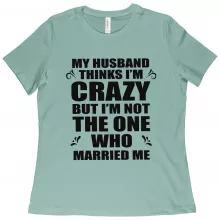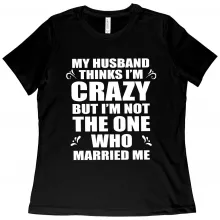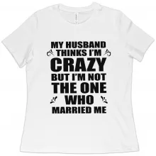 Use our battle tested marketing materials for Women's My Husband Thinks I’m Crazy T-Shirt - Funny Husband Wife T-Shirts