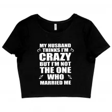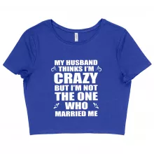 Use our battle tested marketing materials for Women's Cropped My Husband Thinks I’m Crazy T-Shirt - Funny Husband Wife T-Shirts
