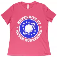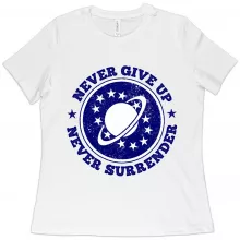 Use our battle tested marketing materials for Women's Never Give Up T-Shirt - Galaxy Quest T-Shirt - Galaxy Quest Apparel