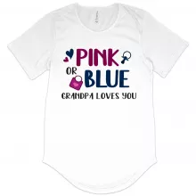 Use our battle tested marketing materials for Men's Pink or Blue Your Grandpa Loves You T-Shirt with Curved Hem - Gender Reveal T-Shirts for Grandparents - T-Shirts for Grandpa