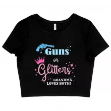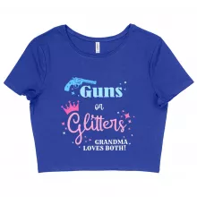 Use our battle tested marketing materials for Women's Cropped Guns or Glitters Grandma Loves Both T-Shirt - Gender Reveal T-Shirts for Grandparents - T-Shirts for Grandma