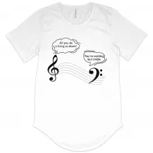 Use our battle tested marketing materials for Men's All You Do Is Bring Us Down T-Shirt with Curved Hem - Funny Music T-Shirts - Musician T-Shirts