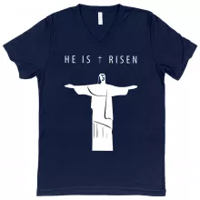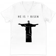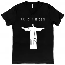 Use our battle tested marketing materials for V-Neck He Is Risen T-Shirt - Christain T-Shirts