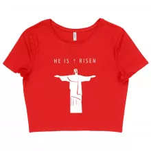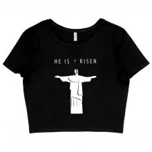 Use our battle tested marketing materials for Women's Cropped He Is Risen T-Shirt - Christain T-Shirts