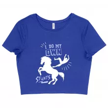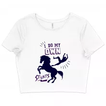 Use our battle tested marketing materials for Women's Cropped I Do My Own Stunts T-Shirt - Horse T-Shirts with Sayings - Funny Quotes About Horse Riding