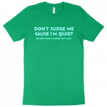 Use our battle tested marketing materials for Heather Don’t Judge Me Cause I’m Quiet T-Shirt - Funny T-Shirt Sayings for Women