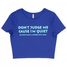 Use our battle tested marketing materials for Women's Cropped Don’t Judge Me Cause I’m Quiet T-Shirt - Funny T-Shirt Sayings for Women