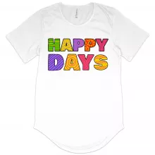 Use our battle tested marketing materials for Men's Happy Days T-Shirt with Curved Hem - Retro T-Shirt