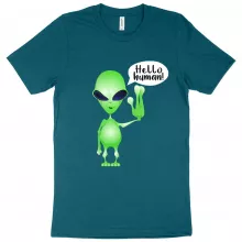 Use our battle tested marketing materials for Heather Hello Human T-Shirt - Alien T-Shirt