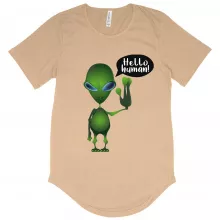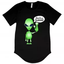 Use our battle tested marketing materials for Men's Hello Human T-Shirt with Curved Hem - Alien T-Shirt
