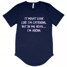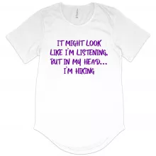 Use our battle tested marketing materials for Men's I Might Look Like I’m Listening T-Shirt with Curved Hem - Hiking Men's T-Shirt - Sarcastic T-Shirt
