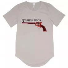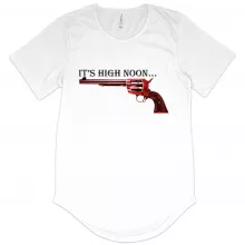 Use our battle tested marketing materials for Men's It’s High Noon T-Shirt with Curved Hem - Pistols T-Shirt