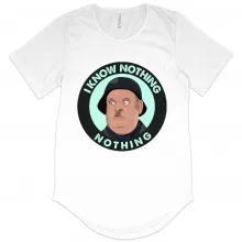 Use our battle tested marketing materials for Men's I Know Nothing T-Shirt with Curved Hem - Hogan's Heroes T-Shirts