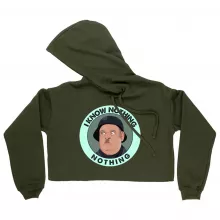 Use our battle tested marketing materials for Women's Cropped Fleece I Know Nothing Hoodie - Hogan's Heroes Hoodies