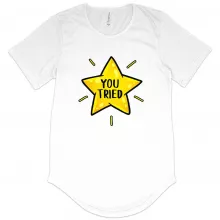 Use our battle tested marketing materials for Men's You Tried T-Shirt with Curved Hem - Gold Star T-Shirt - Graphic T-Shirt