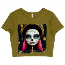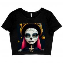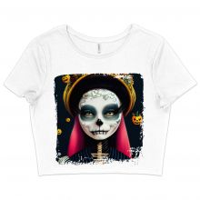 Skeleton Art Women's Cropped T-Shirt - Cartoon Girl Crop Top - Printed Crop Tee Shirt