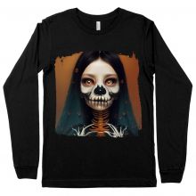 Creepy Girl Long Sleeve T-Shirt - Gothic Print T-Shirt - Skeleton Long Sleeve Tee Shirt