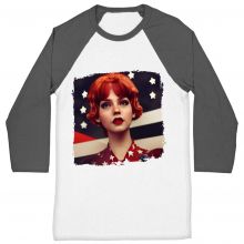 Use our battle tested marketing materials for USA Flag Print Baseball T-Shirt - Girl Art T-Shirt - Patriotic Tee Shirt
