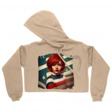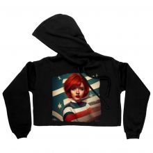 Use our battle tested marketing materials for Girl With Red Hair American Flag Women's Cropped Fleece Hoodie - Print Cropped Hoodie for Women - Flag Hooded Sweatshirt