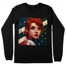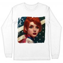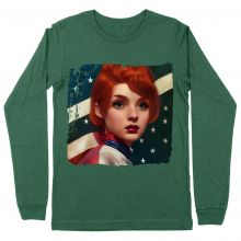 Girl Red Hair American Flag Long Sleeve T-Shirt - Art T-Shirt - Cool Long Sleeve Tee Shirt