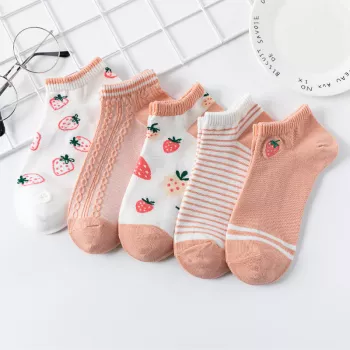 5 Pairs Fashionable Cotton Strawberry Low Cut Ankle Socks for Women & Girls