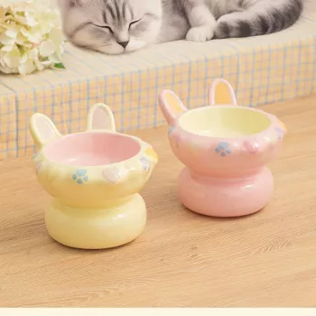 Ceramic Elevated Pet Bowl – Cute Raised Food & Water Dish for Cats and Small Dogs