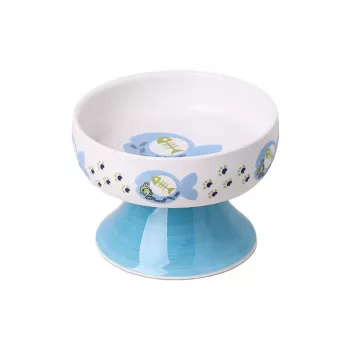 Elevated Ceramic Cat Bowl with High Foot & Neck-Support