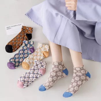 5 Pairs Women's Vintage Floral Socks – Cotton Harajuku Ankle Socks