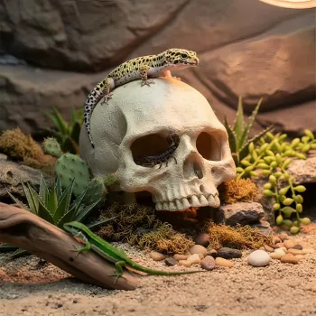 Resin Skull Hide Cave for Lizards and Reptiles - Realistic Terrarium & Aquarium Decor