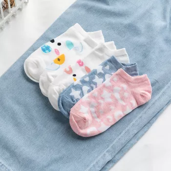 5 Pairs of Cute Cotton Ankle Socks for Women - Elegant & Fun Designs